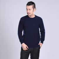 纯羊毛圆领加厚男士毛衣欧美中年麻花打底羊毛衫秋冬套头线衣