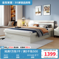 全友家居北欧卧室高箱储物床 1.5/1.8米卧室家具人造板板式床 卧室大床婚床