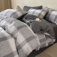 2026新款纯棉床上四件套全棉简约条格被套床单三件套床品_742