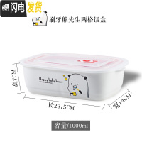 三维工匠密封带盖分隔便当微波炉专用学生成人上班族保鲜的陶瓷碗分格饭盒 刷牙熊先生两格饭盒