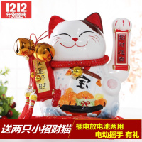 招财猫陶瓷摆件 电动电池摇手发财猫大号 收银台店铺开业乔迁礼品