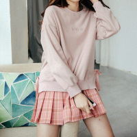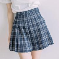 2017新款瞌睡兔蓝粉格少女百褶A字短裙高腰显瘦学生2017春季新款半身裙