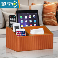 敬平纸巾盒抽纸盒家用客厅轻奢茶几纸抽盒餐桌皮革多功能遥控器收纳盒 橙色组合套餐一