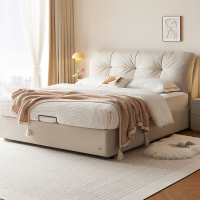 全友家居奶油风布艺床新款主卧室猫抓绒布云朵软包双人大床