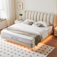 全友家居现代简约卧室奶油风肤感科技布软床双人床布床悬浮布艺床可选