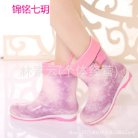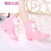 锦铭七玥新款时尚成人雨鞋女士水鞋套鞋短筒胶鞋防水中筒雨靴女时尚加棉女