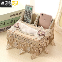 三维工匠欧式多功能纸巾盒客厅抽纸盒遥控器收纳盒布艺蕾丝桌面纸抽盒家用 琉璃-咖色