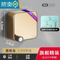 敬平不锈钢隐形晾衣绳架室内免打孔可收缩阳台卫生间伸缩浴室飘窗器 香槟金-新升级3.5m[更小巧]绳子