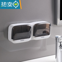 敬平肥皂盒壁挂式沥水免打孔家用带盖双层新款浴室托盘香皂盒子置物架 纯白 双皂款[大小肥皂通用]