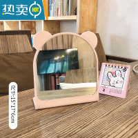 敬平ins网红台式化妆镜学生宿舍桌面便携大号梳妆镜少女卧室公主镜子 粉色熊耳—折叠便携式用镜