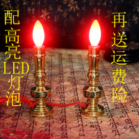 纯铜烛台摆件招财关公文武财神爷插电长明灯led供灯蜡烛供佛用品