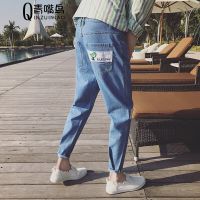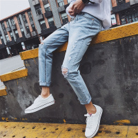 夏季乞丐裤浅色破洞牛仔裤九分裤男士韩版潮流百搭修身小脚裤子生