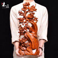 黄花梨木雕喜上眉梢根雕摆件雕刻工艺品家居招财客厅装饰品送礼品