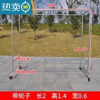 敬平镀锌钢管晾衣架简易落地户外室外双杆水管晒被家用阳台挂衣凉衣架 带轮子长2高1.4宽0.6 +送40个防风钩. 大