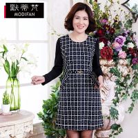 默蒂梵中老年女装新品连衣裙中年女装时尚连衣裙妈妈装春秋格子裙子女白格