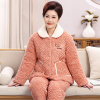 三层夹棉女士睡衣冬季加厚加绒牛奶绒开衫翻领保暖大码家居服套装
