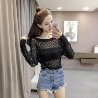 夏季薄款新款INS镂空冰丝长袖针织衫女短款外搭套头防晒罩衫上衣
