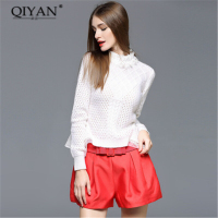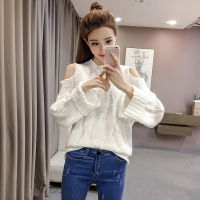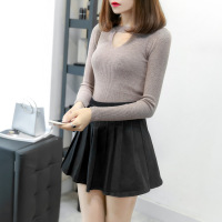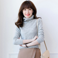 年秋冬新款安迪绒半高领针织衫长袖女袖口镂空钩花打底衫上衣