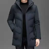 羽绒服男士冬季中长款2024冬装新款连帽潮牌加厚冬季新款连帽羽绒服男商务休闲纯色防寒保暖外套男高端白鸭绒外套可拆卸帽子