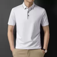 夏季商务男士翻领纯色桑蚕丝短袖t恤中年无痕男装冰丝半袖polo衫