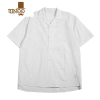 YANXU白色古巴领微宽松衬衫男免烫皱夏季薄款休闲衬衣日系通勤