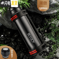 三维工匠保温水壶大容量杯子不锈钢男便携车载户外水杯旅行热水壶2保温瓶 黑色1.2