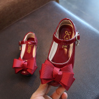 2017春秋新款儿童鞋子小高跟单鞋女童漆皮皮鞋中大童蝴蝶结公主鞋