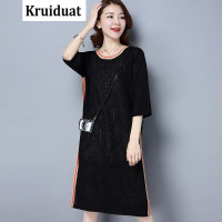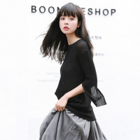 Kruidvat高开叉女式针织衫套头韩版长款显瘦女士针织裙中袖套头2017春装Z010黑色