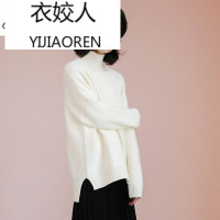 衣姣人(YIJIAOREN)1400实拍韩版半高领针织衫女套头宽松纯色开叉学生加厚短款毛衣均码