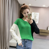 薇侣2017新品秋季新款韩版撞色开叉长袖针织衫女套头宽松薄款打底衫上衣潮