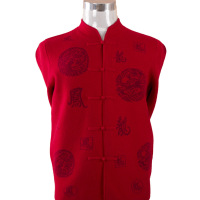 爸爸羊绒衫加厚开衫中老年人红色福字开身针织衫加肥加大男式毛衣红色