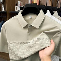 锦氨提花拼接无痕短袖polo衫男2026夏季新款冰丝纯色透气男士T恤