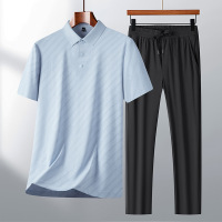 春夏新款男士夏季清凉套装T恤运动长裤薄款透气休闲冰丝速干