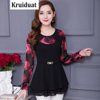 Kruidvat2017春款女装韩版妈妈装时尚中老年人印花T恤女式长袖打底衫Z030红花