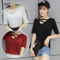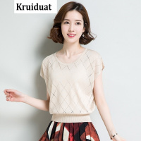 Kruidvat2017夏季女装新款冰麻针织衫圆领套头T恤女时尚镂空色短袖上衣M6