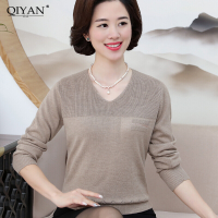 2017中老年妈妈装秋装长袖针织衫女套头新款时尚打底上衣T恤女长袖