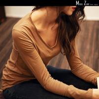 娉语欧洲站2014秋冬新款V领莫代尔淑女T恤大码显瘦长袖打底衫韩国定制