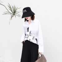 衬衫女秋冬新款欧洲站长袖印花宽松韩版百搭学生bf风打底外套上衣