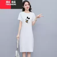 YIBUSHENG白色短袖连衣裙女2024新款韩版过膝长款t恤裙仙女气质裙子