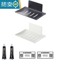敬平免打孔浴室肥皂盒壁挂铁艺置物架卫生间沥水皂托家用壁挂式香皂架 黑+白碳钢款(两个装)