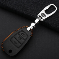 一汽奔腾x80骏派D60钥匙包锁匙扣专车专用手工缝合男士女士真皮小车遥控保护套A款奔腾X80精品扣橙线七天无理由退货