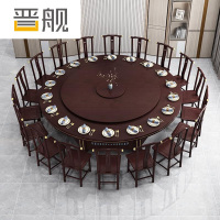 晋舰新中式手动餐桌酒店大圆桌木质现代桌包厢大型餐桌配套椅子