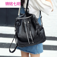 锦铭七玥双肩包女软面包包2017新款时尚休闲百搭软皮妈咪包简约百搭女背包