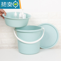敬平塑料桶水桶家用套装储水加厚桶盆圆桶学生手提大号宿舍洗衣桶寝室 北欧蓝(三件套)