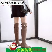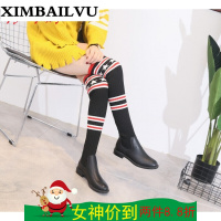 品牌秋冬新款休闲弹力靴子包腿过膝长筒靴子长靴女鞋黑色黑色