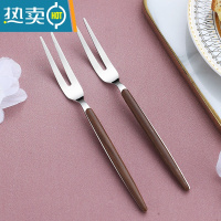 敬平304不锈钢水果叉套装北欧家用甜品儿童勺子水果签果插西餐二齿叉 胡桃木色水果叉2个