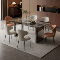 质凡轻奢岩板餐桌椅组合现代简约吃饭桌子家用带转盘大理石圆桌