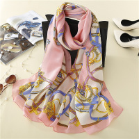法式优雅链条纯真丝丝巾春秋桑蚕丝长款纱巾高档披肩围巾女夏季