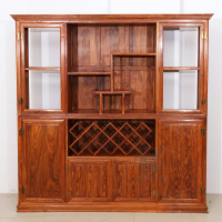 粤顺红木酒柜 花梨木红酒柜 实木间厅柜酒架 新中式客厅酒柜博古柜玻璃柜G38