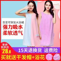 百变可穿浴巾女成人抹胸浴袍加大纯棉柔软超强吸水吊带浴裙汗蒸服